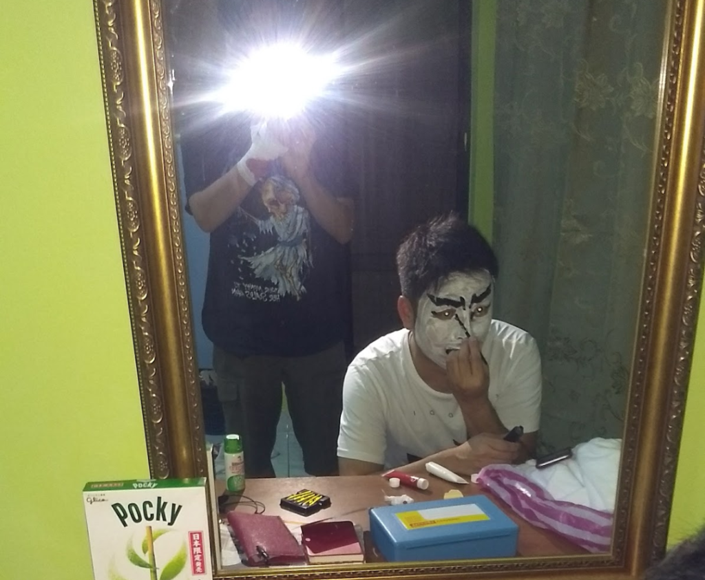 バッチリの歌舞伎メイクの彼はもうノリノリ