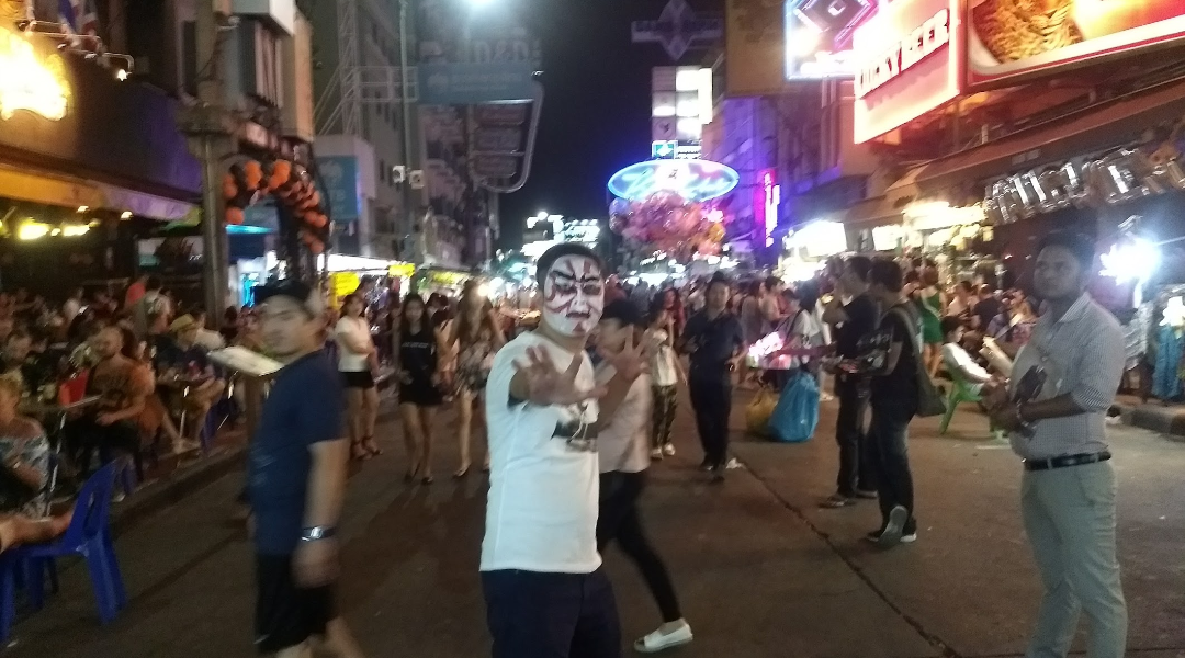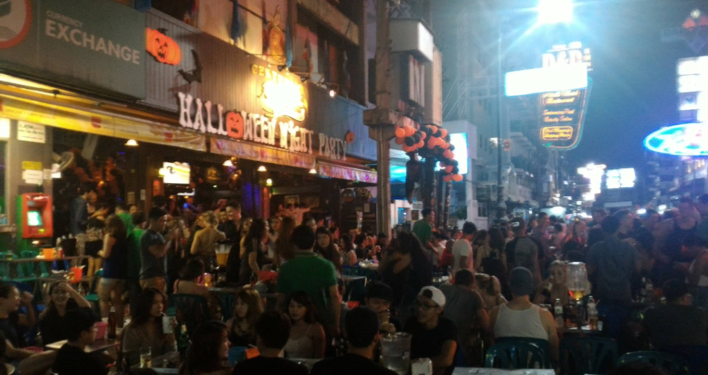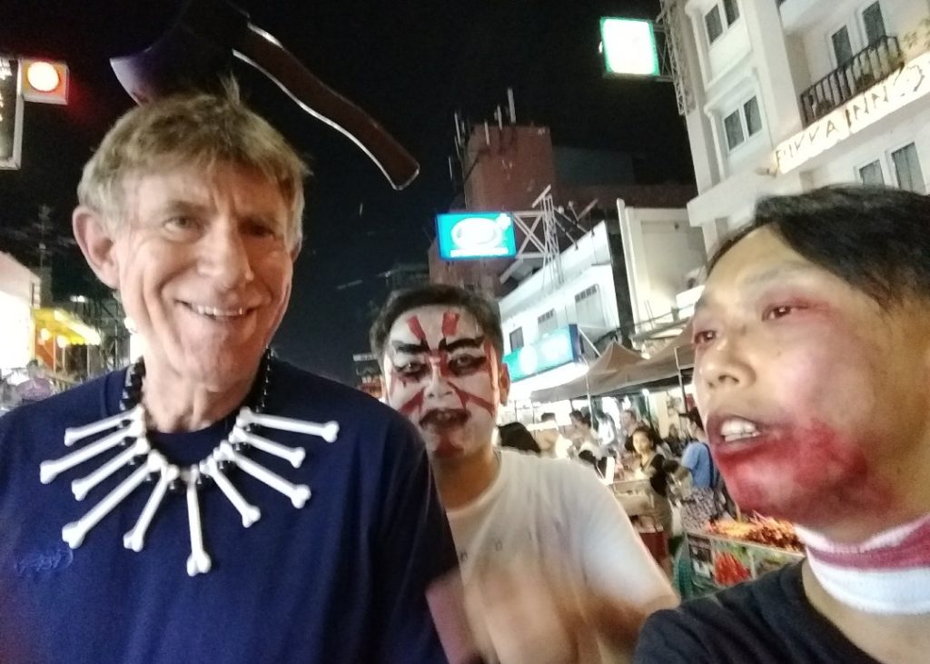 あ、そうそうここバンコクにもなかなか盛大にハロウィンで盛り上がる場所があります、オポッサムツアーではもうおなじみになっています、カオサンロードです。