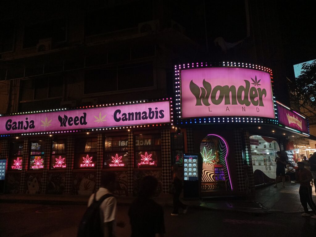 フォトスポットとしての有名なカオサンのマクドナルドの地下にあった20ほどのお店が全部大麻屋になっているのは圧巻である。
